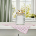 This decorative jar features a airtight clear glass container topped with an ornate, golden butterfly lid. The contrast between the transparent jar and the gleaming butterfly creates an elegant and eye-catching piece, perfect for adding a touch of sparkle and whimsy to any décor.